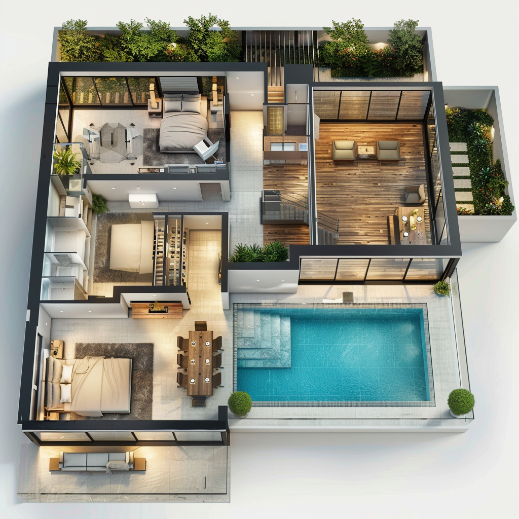 Para criar uma piscina a partir de um projeto técnico arquitetônico, deve-se primeiro definir seus objetivos e necessidades, como: formato, espaço disponível, profundidade, entre outros. A partir disso, o projeto arquitetônico deve ser criado por profissionais e em seguida, montamos o modelo 3D da piscina juntamente com o orçamento. Com todas as aprovações, a construção do seu sonho começa.